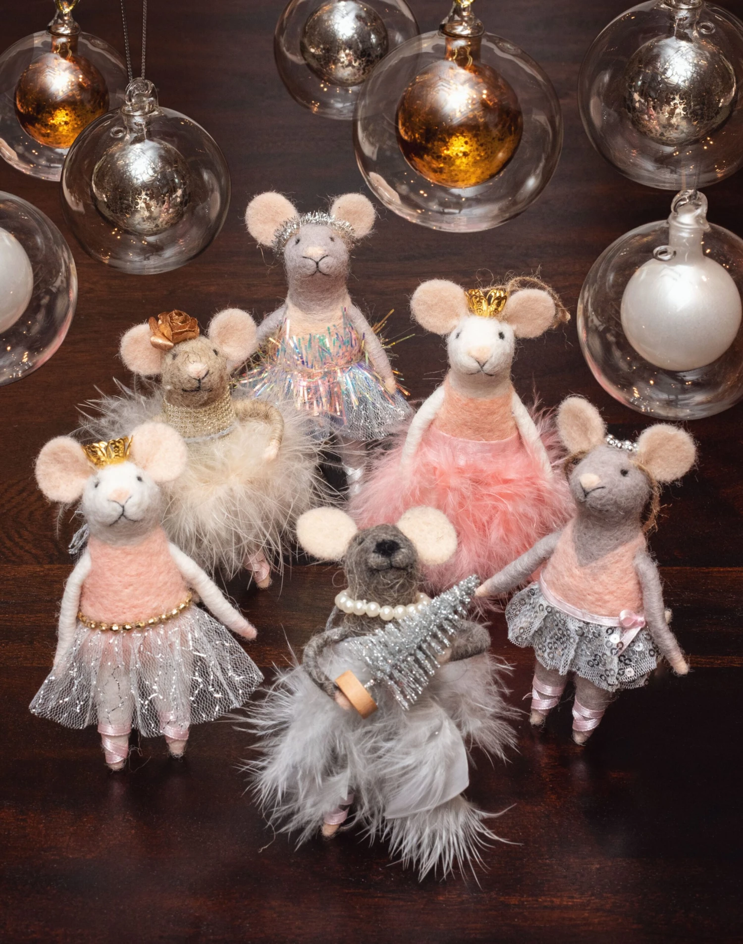 Add a little holiday cheer to your home with this fun Ballet Mice Felt Ornament Set! These whimsical table top ornaments offer a delightful touch of holiday charm to your home decor. Expertly crafted from soft felt, each mouse is finished with unique details, making them an enchanting addition to your festive decorations. Perfect for decorating your living room or bedroom, these ornaments are sure to bring that extra bit of holiday charm to your decor.