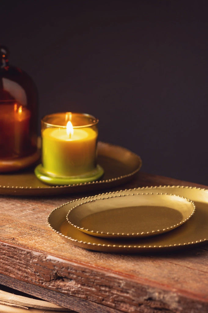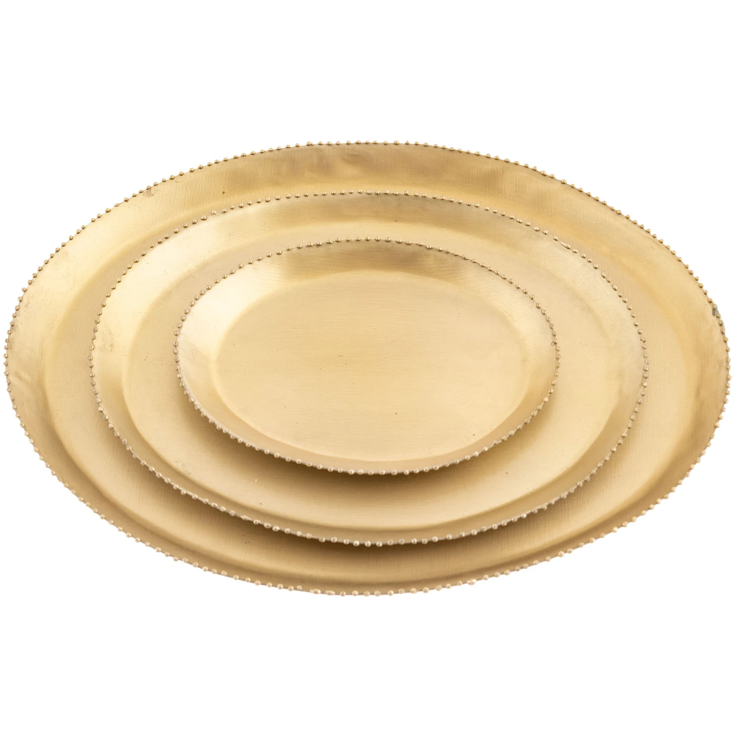 Beaded gold trays in three sizes are a beautiful addition to any home. Their versatile appearance allows for styling into modern or traditional design. These trays are for decorative use only and can be covered with candles, baubles, incense and more. Gold beaded accents around the edges elevate these simple but chic trays.