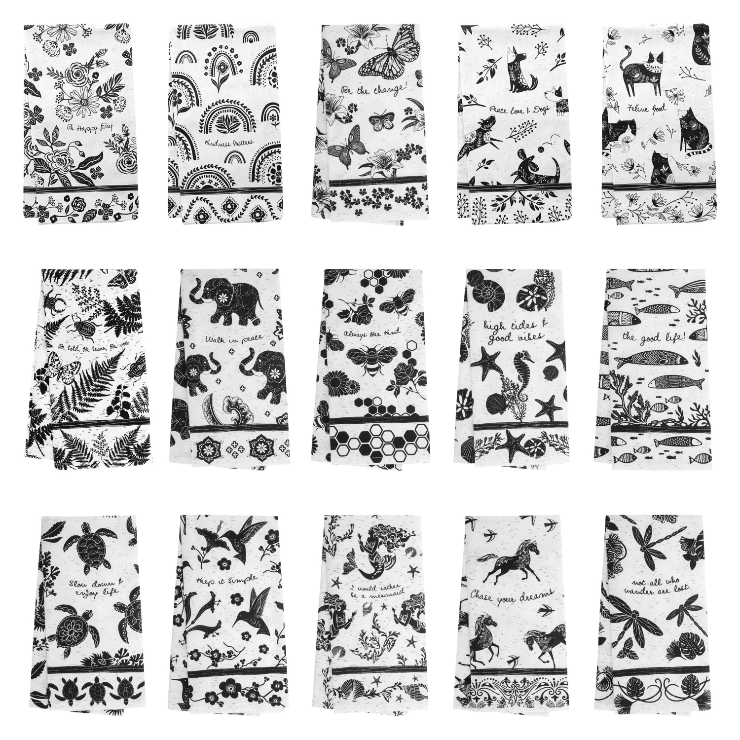 Add a touch of Boho chic to your kitchen and decorate with this collection of durable black and white boho tea towels. The perfect match to your boho mug collection, these tea towels will help you wipe away any kitchen spills while still decorating in style.