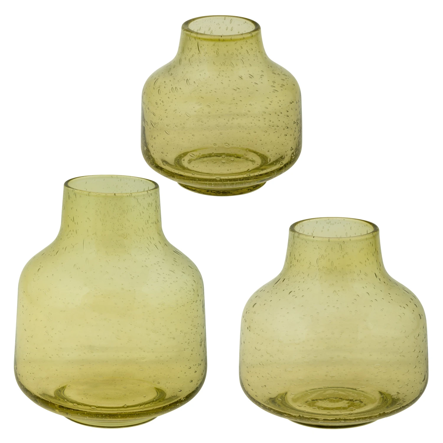 Our Bubble Glass Vases bring a modern style to your home with their unique texture and shape. Use them to make a statement around your home as you group them together in a set of three or stand them alone individually.