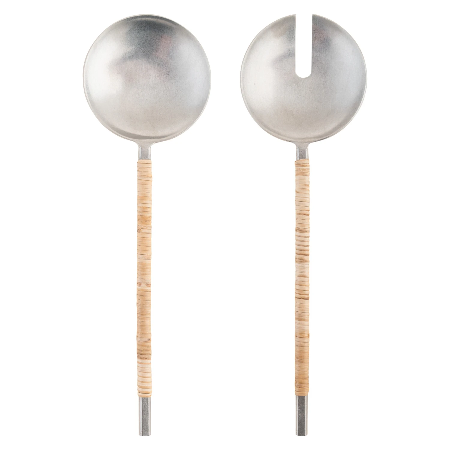 These Catalina salad servers are a simple and elegant staple in the kitchen. Beautifully designed, this set of spoon and forked servers is sturdy and durable. Made from stainless steel and featuring a gorgeous cane-wrapped handle, these servers can effortlessly serve anything from salads and pastas to chopped fruits and vegetables.