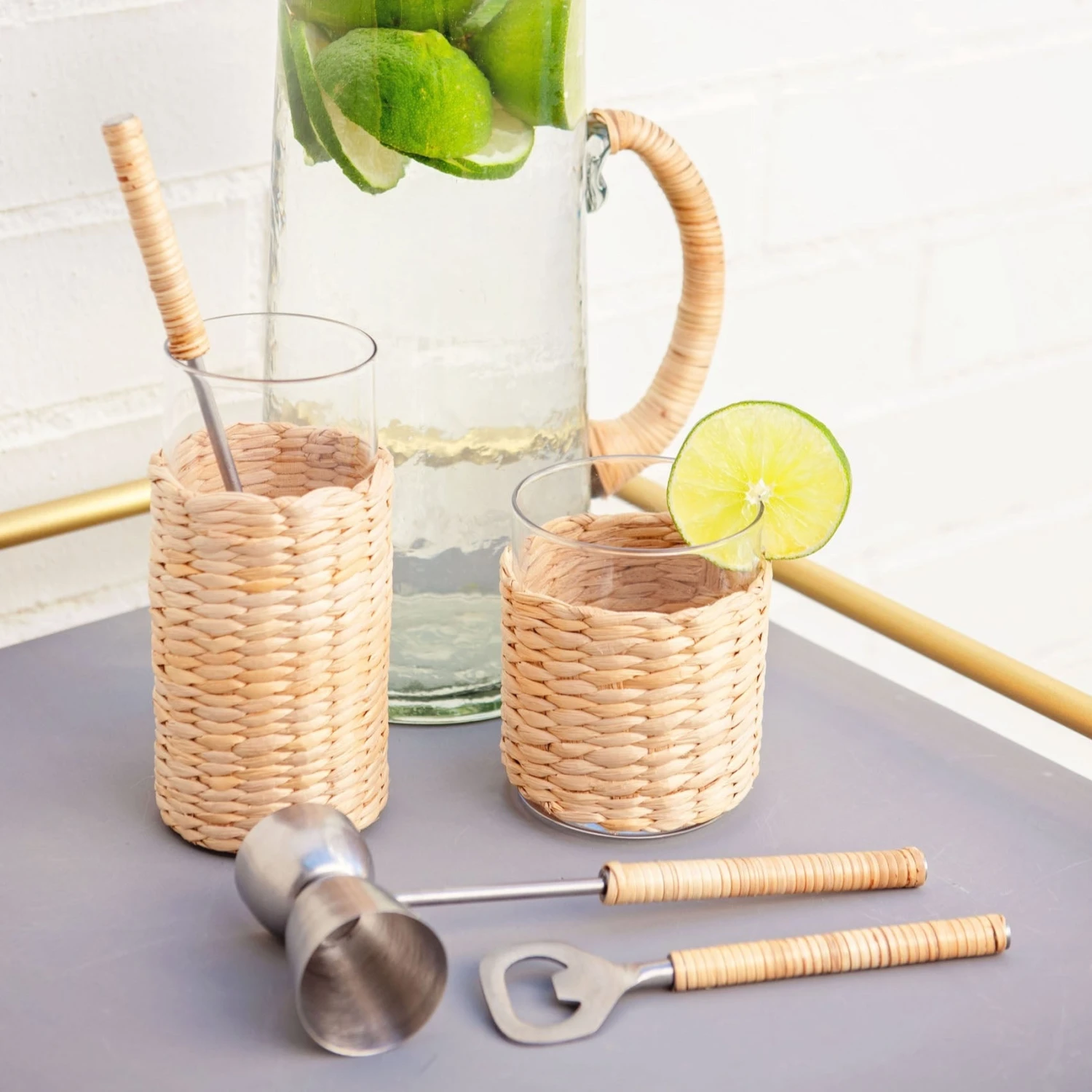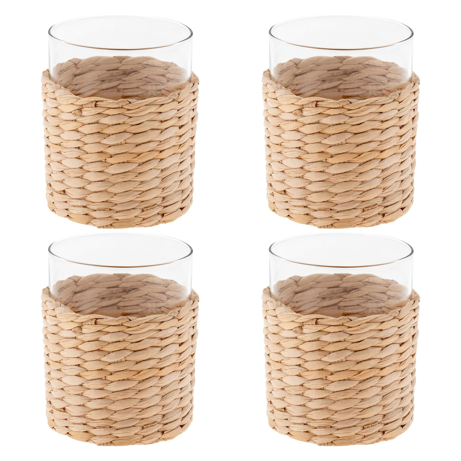 Bring a unique and natural feel to your glassware by including our Catalina collection with handwoven cane sleeves. These glasses serve as a timeless piece, but with a spin with its removeable, natural-colored sleeves. Perfect for any season, these pieces are functional in soaking condensation from the glasses while displaying a trendy bohemian or waterfront look.
