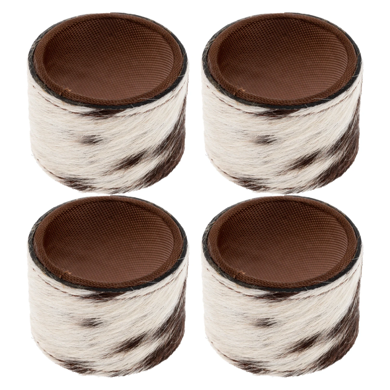 Enhance your rustic western dining experience with these luxurious Cowhide Napkin Rings, crafted from durable cowhide and nylon to create a sophisticated western aesthetic. They add a touch of sophistication to your tabletop, perfect for entertaining with an elegant feel.Â