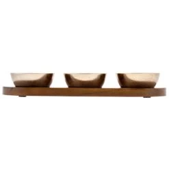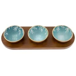 Our dipping bowls are perfect for any gathering and will make you look like the great host you are. Make any dip of your choice look so yummy in these decorative set of 3 bowls. It includes an acacia wooded tray to make sure your bowls have a decorative home.