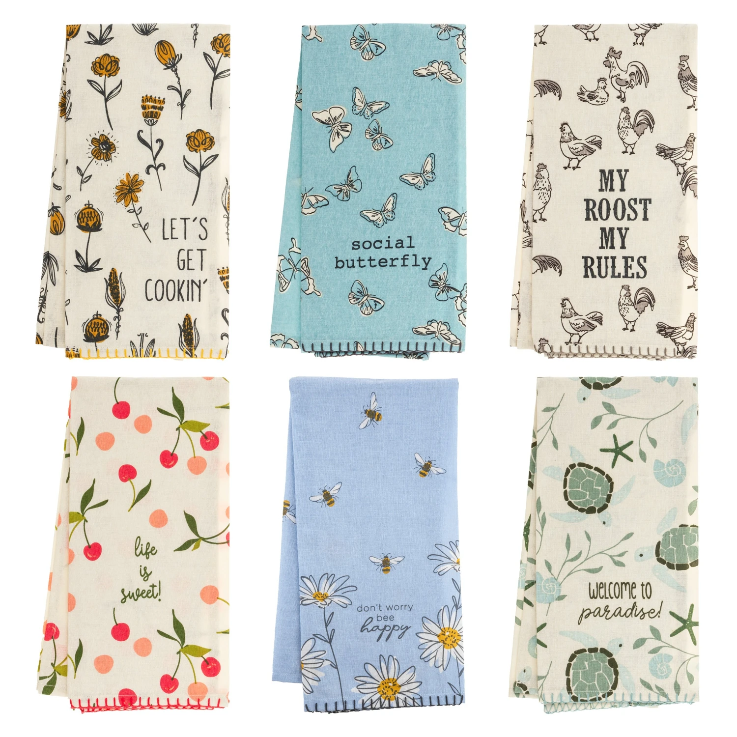 Our Fiona Tea Towel is a charming addition to any kitchen. Printed with sweet, nature themed patterns and adorable sayings, these tea towels are accented with an embroidered trim in coordinating colors.