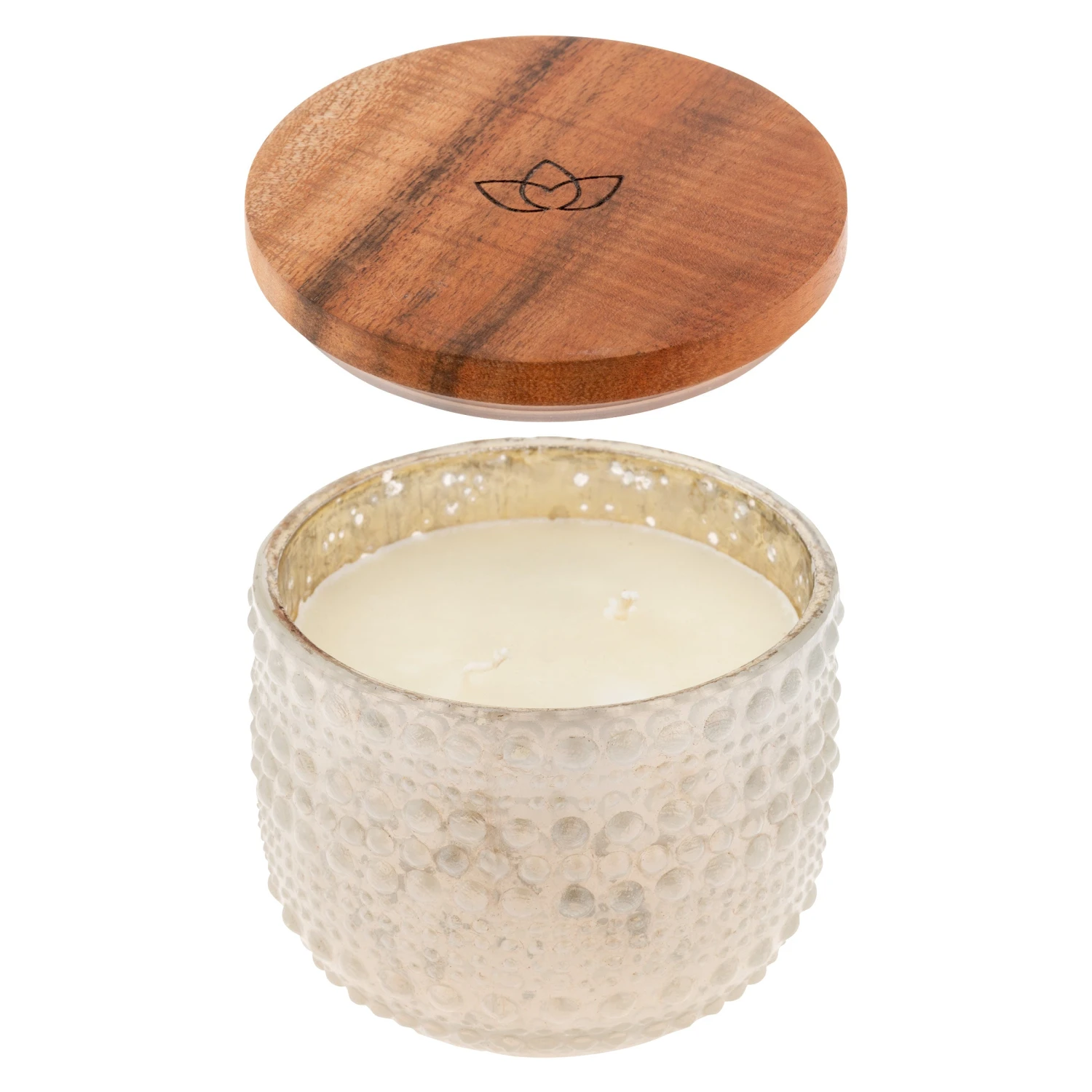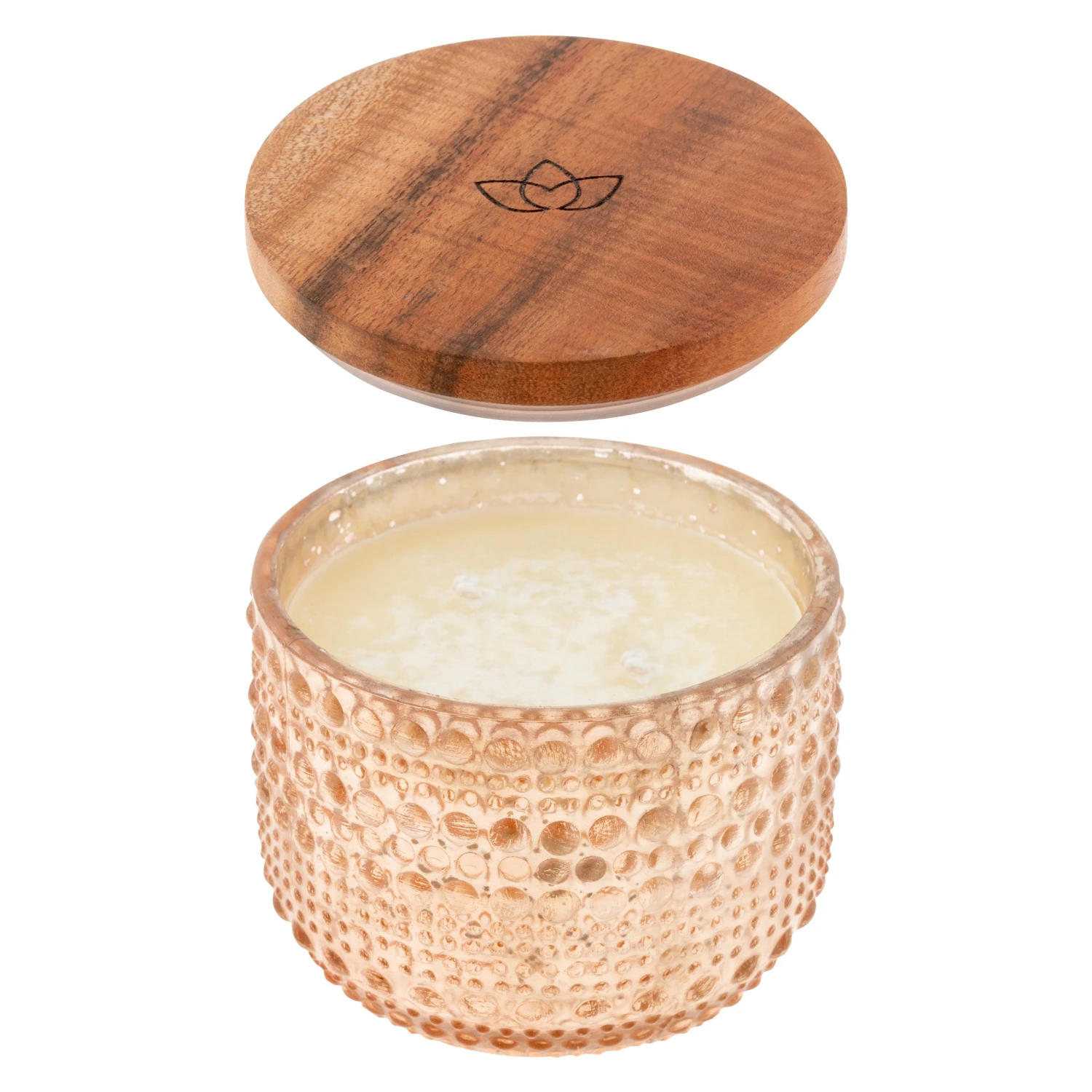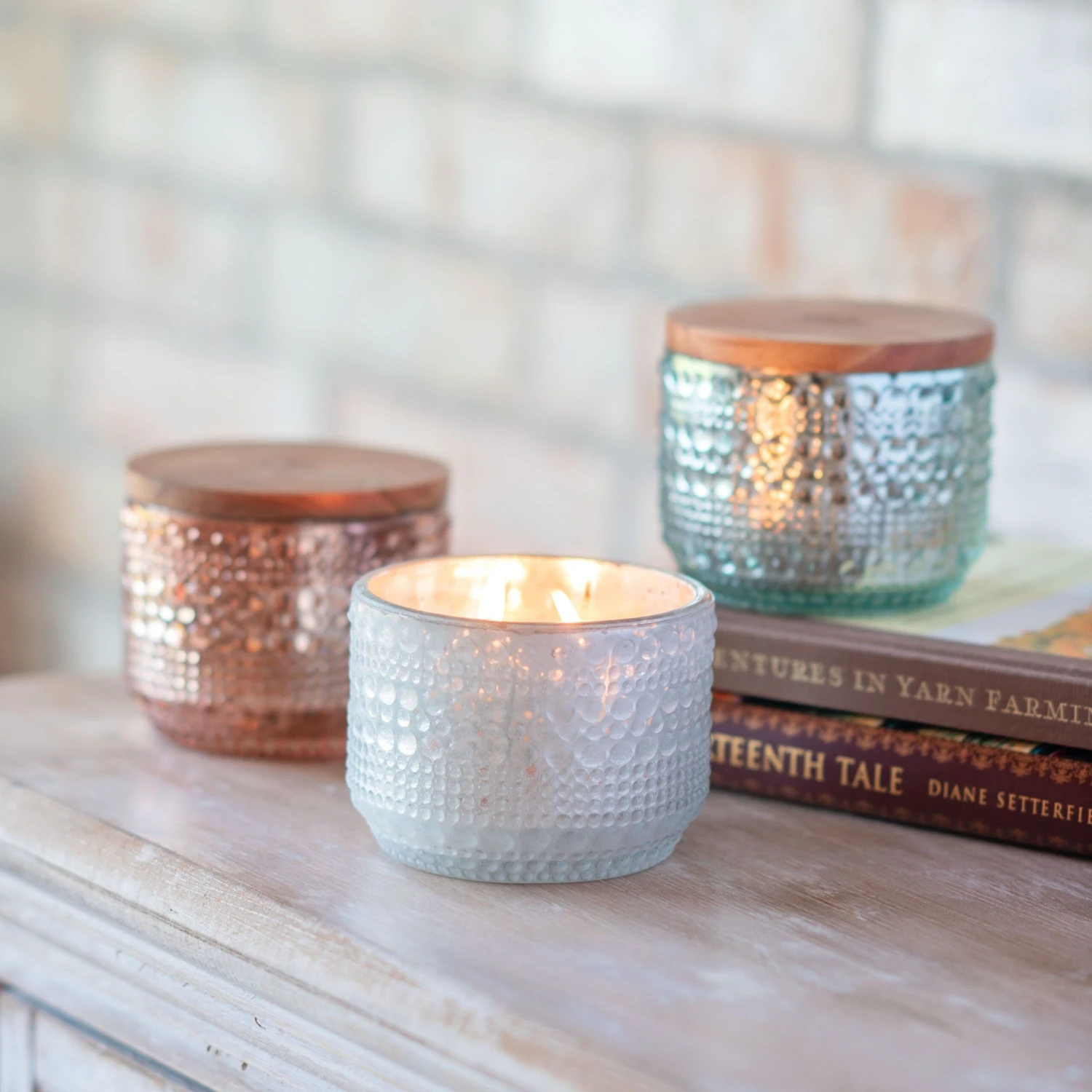 Bring a delightful aroma to your home by lighting one of our new hobnail glass candles. These hobnail glass textured candles come in four classic colors featuring four refreshing scents in a soy wax blend. These candles can brighten any room with its reflective design and its natural wood lid. It can also brighten a friend or loved one’s day as the perfect housewarming gift!