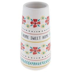 Made of stoneware and featuring colorful designs, these Large Bud Vases are ideal for displaying your botanicals. Their soft tones and the script adorning their outside make your space a little bit brighter. These make a wonderful gift, especially with flowers inside.