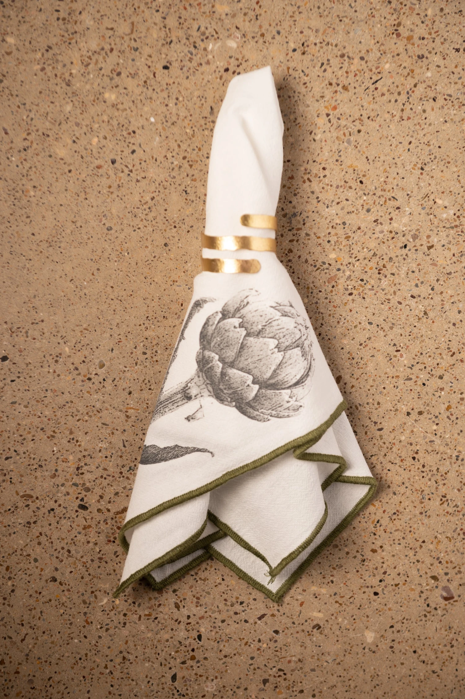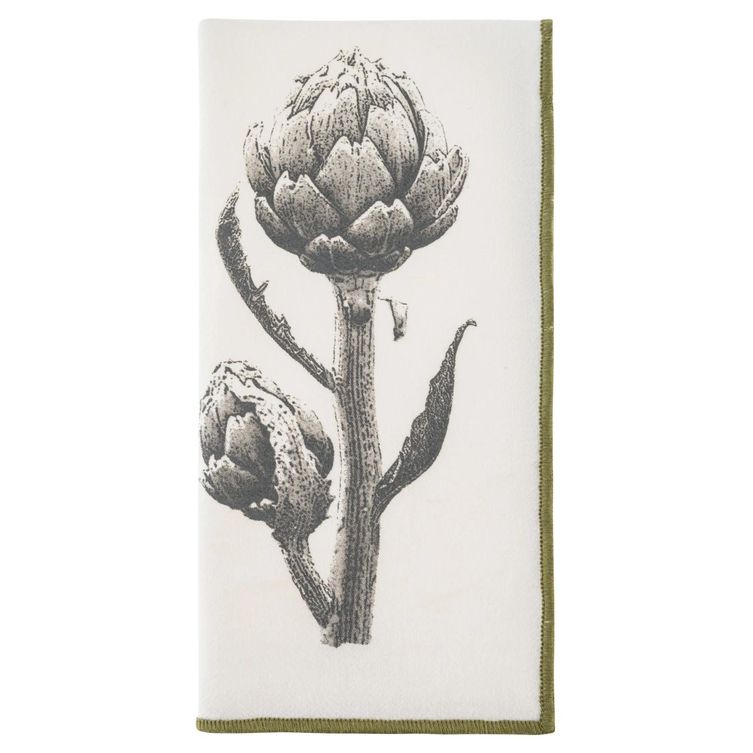 Beautiful artwork is featured on the center of these warm, natural dinner napkins for an elegant look that elevates any meal. Gorgeously tailored with a colorful merrowed edge outline, these dinner napkins look great while staying functional.
