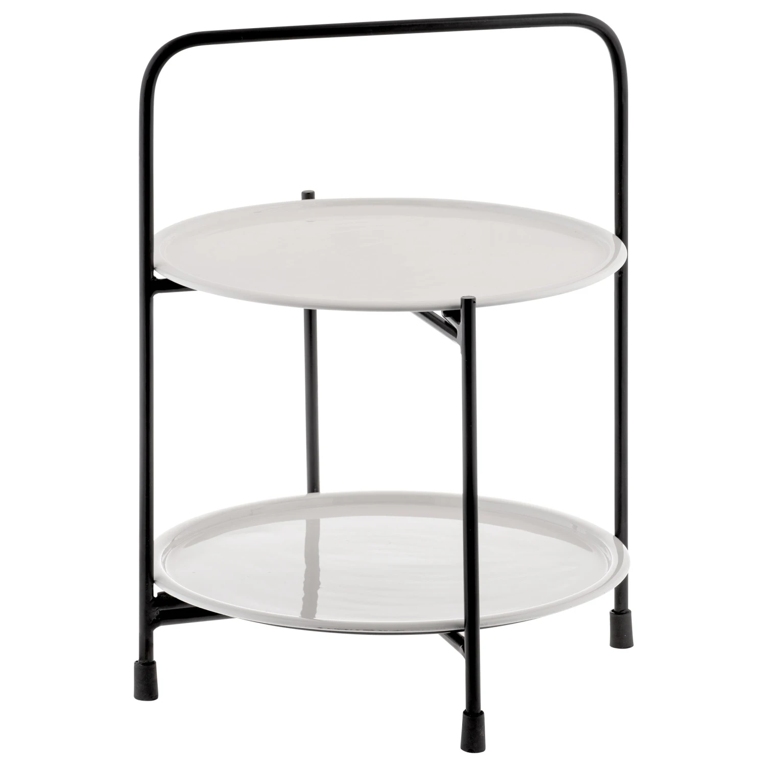 Display and organize your baked goods, home décor, or a fun charcuterie board with our easy-to-assemble, two-tier white enamel tray stand. Rising to the perfect height, this stand is sturdy and looks essential to home spaces such as kitchens, pantries, bathrooms, bedrooms, and more. Whether your home is rustic, modern, or contemporary, this stand is guaranteed to be a timeless addition to your home.