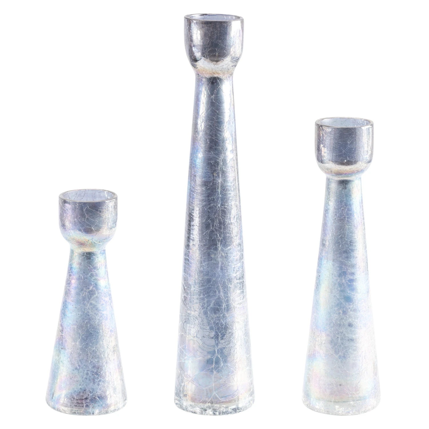 Increase the level of crackle of your candles with these crackle candle holders. The full coverage crackle effect on these candles will increase the ambience of the candle flames while allowing you to arrange them any way you wish. With three different sizes, you can play around with depth and dimensions to make a decor unique to you.