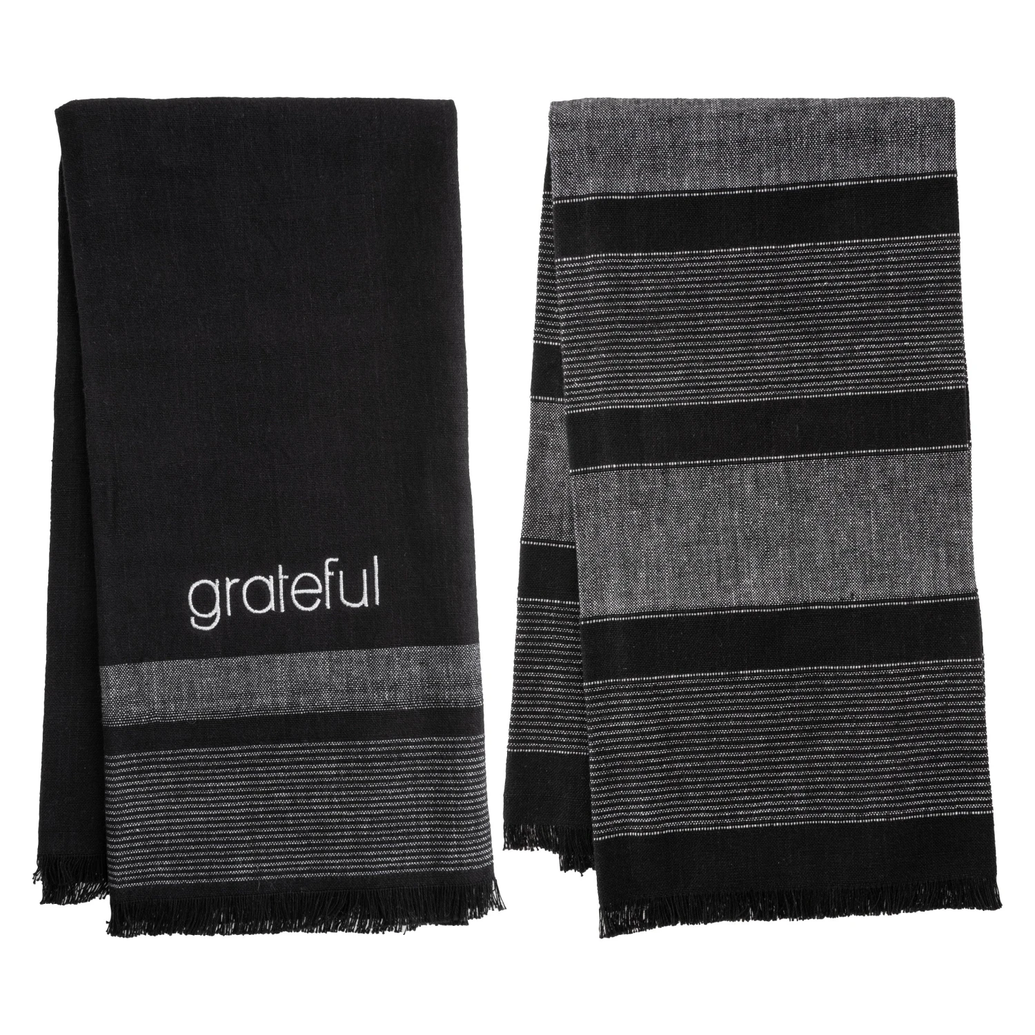 Whether you are looking to add an extra touch of style to your kitchen or for a functional and soft towel, with these tea towels you will get the best of both worlds. Made out of 100% woven cotton, these grey towels are beautifully embroidered with a bird design and have a touch of fringe. The fabric hook stitched in makes for easy hanging.
