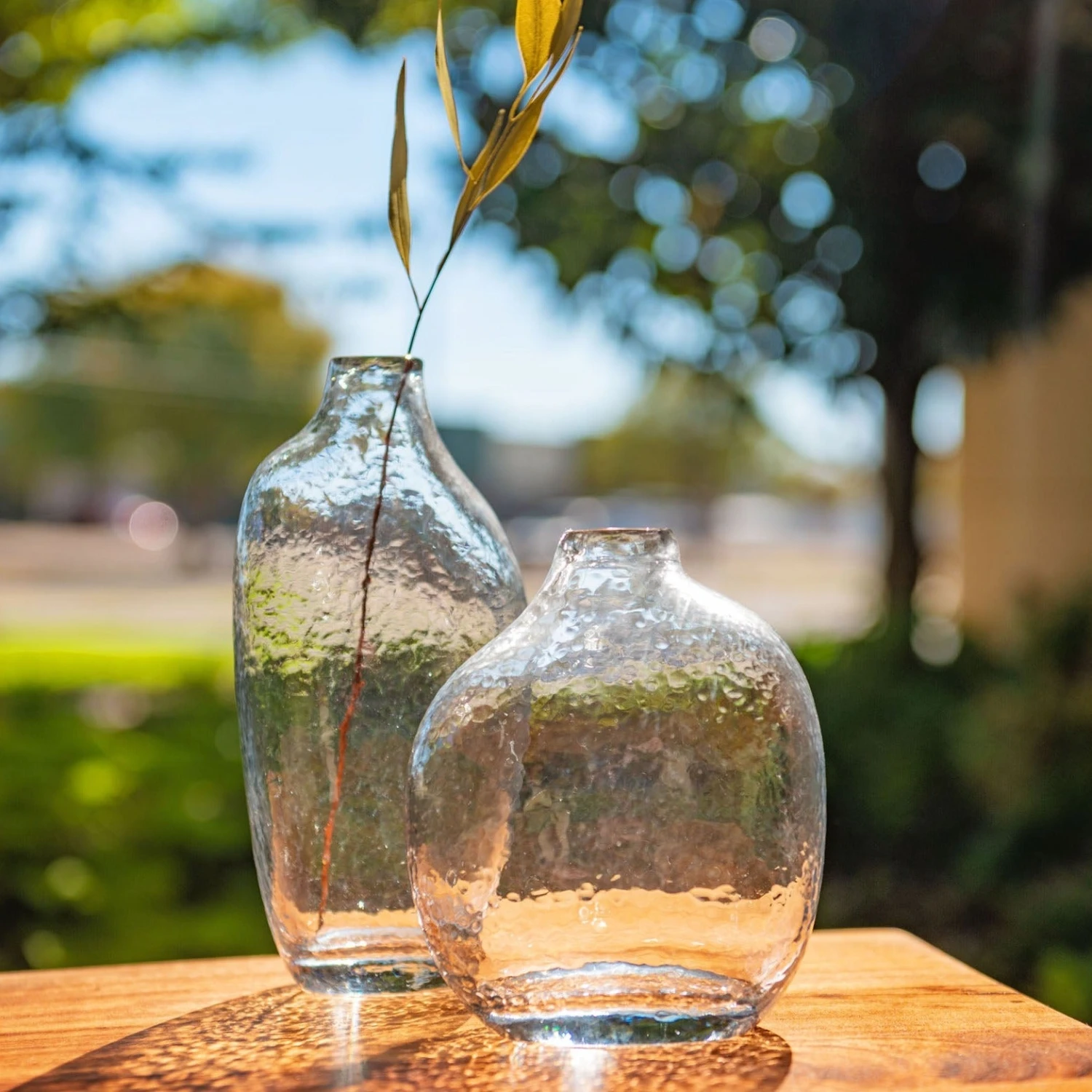 With their hammered glass finish and modern, organic style, our Karma vases are perfect for displaying some freshly-cut stems. With three different sizes and colors available to choose from, pair together for a beautiful grouping or feature alone. Either way, these are sure to make a bold statement in your home!