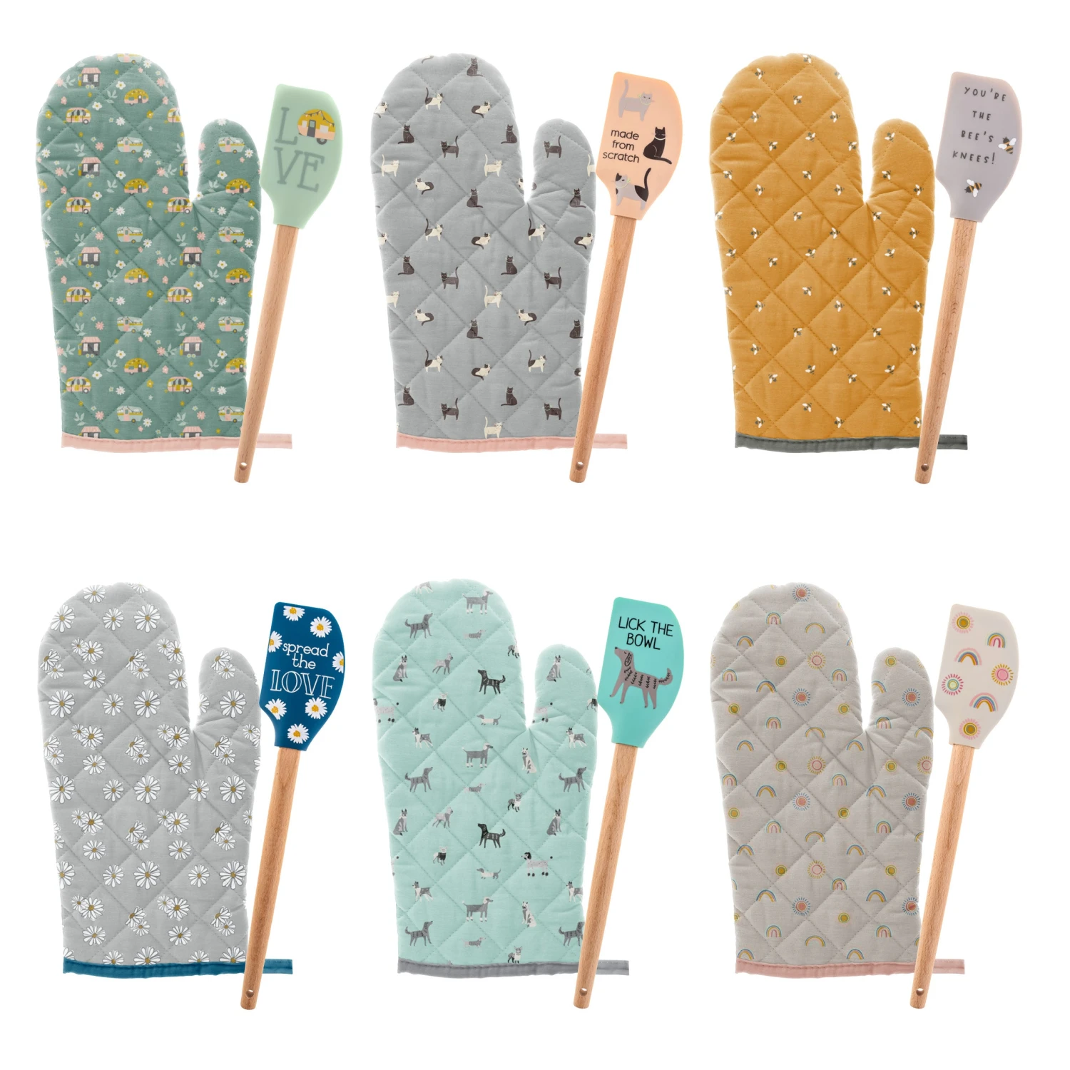 Your new best friend in the kitchen, this Reese oven mitt and spatula set will help you whip up something delicious in style. Made from soft cotton, the Reese oven mitt is durable and comfortable to wear while you bake. Add a touch of personality and style to your cooking with this matching set that also coordinates with our Reese mugs!