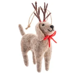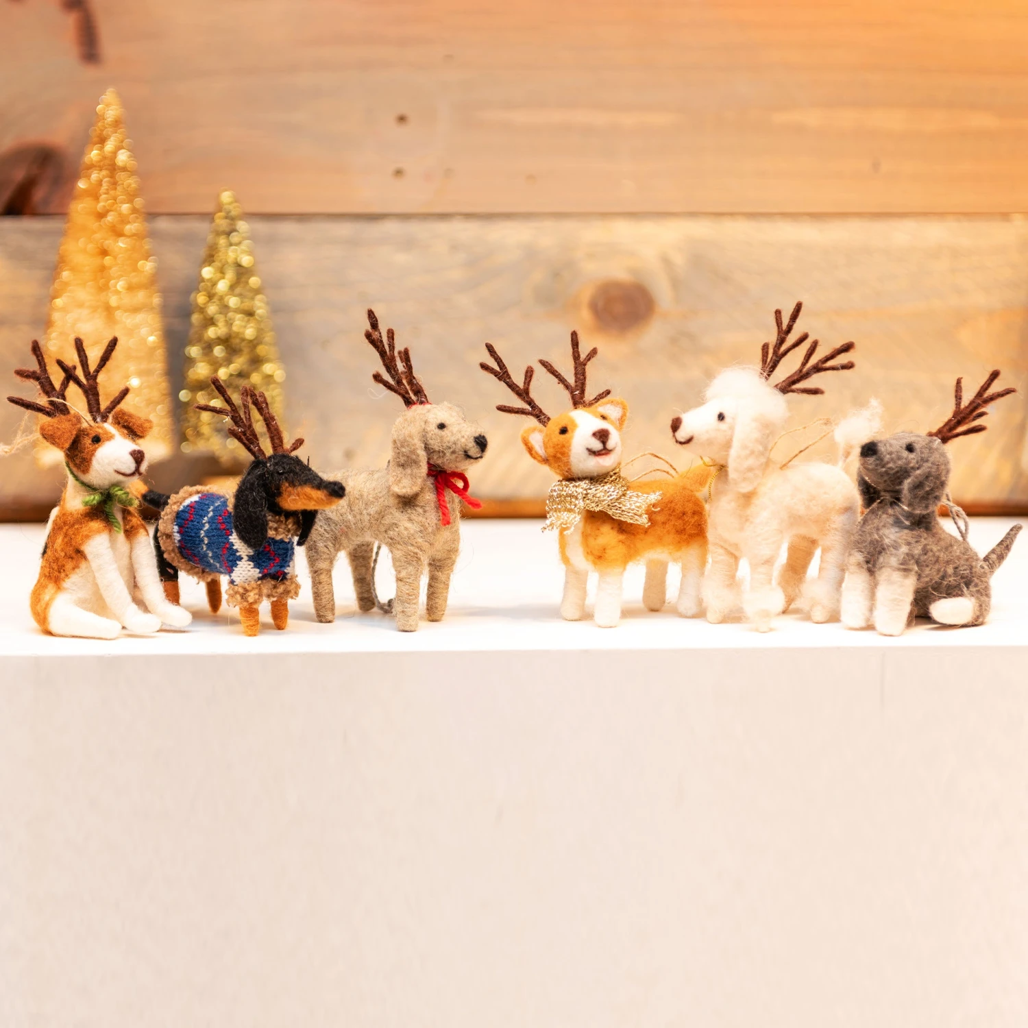 This merry Reindeer Dogs Felt Ornament Set is a perfect addition for any holiday décor! With their whimsical design and holiday charm, these reindeer dogs will have your home doggone festive! Each pup is unique and sure to stand out on your table top this Christmas season! The perfect table top accessory, these ornaments add a touch of elegance to your home.