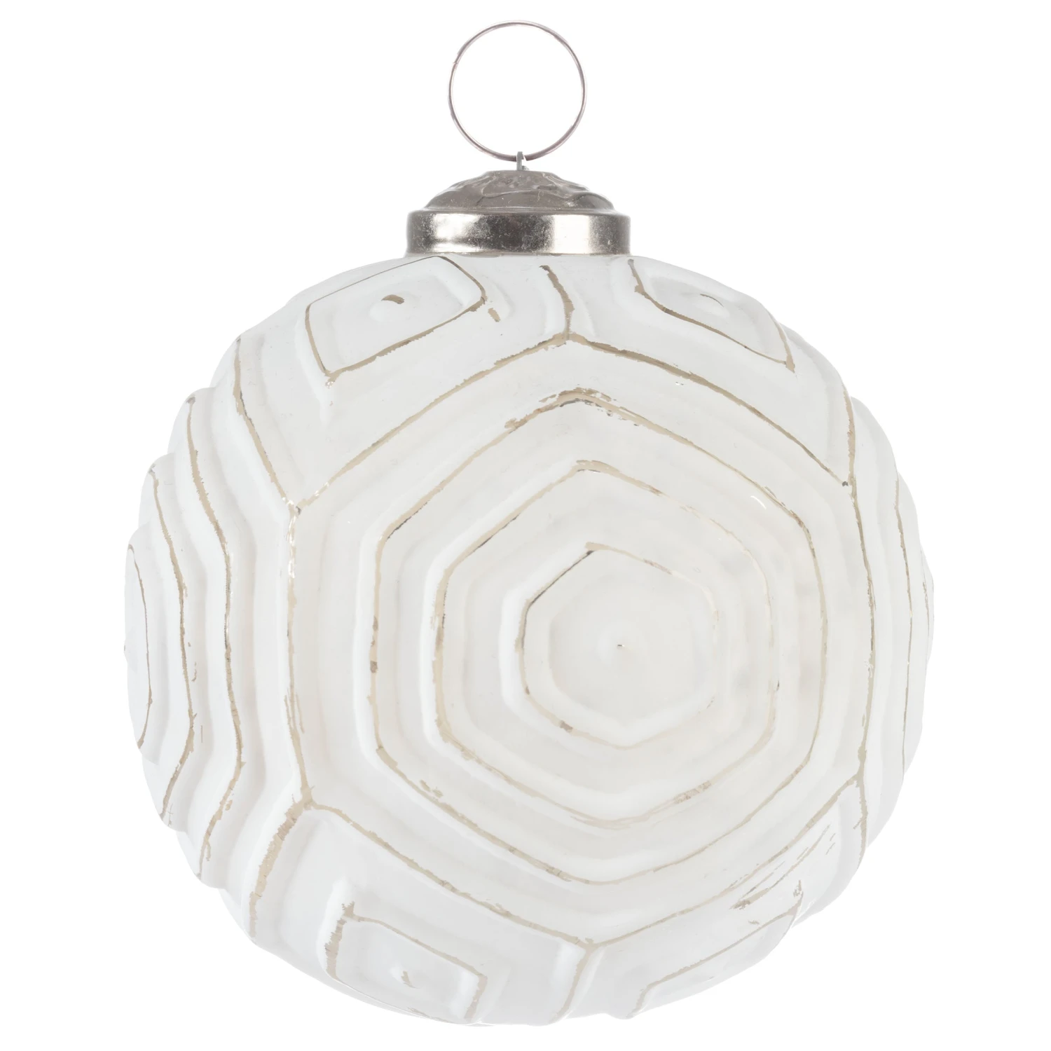 Take your holiday decorating up a notch with the modern geometric design of this ball shaped ornament. The neutral white tone is like freshly fallen holiday snow and easily mixes with countless color schemes. This ornament will perfectly fit within any holiday theme and adds a pop of unique texture to the tree.