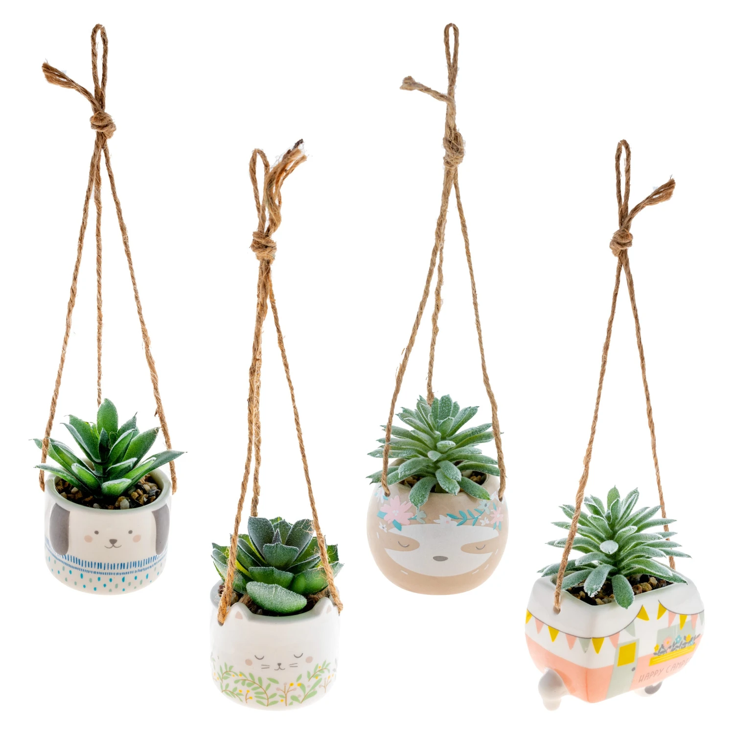 Sweet faces greet you on this charming plant hanger. Fill with any trailing greens or small succulents and tie up above sinks, baths or outdoor spaces.