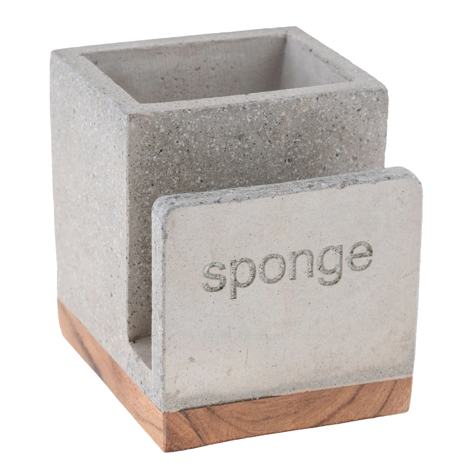 The sonoma stone sponge holder is a modern designed solution for the kitchen sink. Made with concrete and acacia wood this organized holder contains a spot for the kitchen sponge and a small cup for cleaning brushes or soap. A functional piece made beautiful and modern.