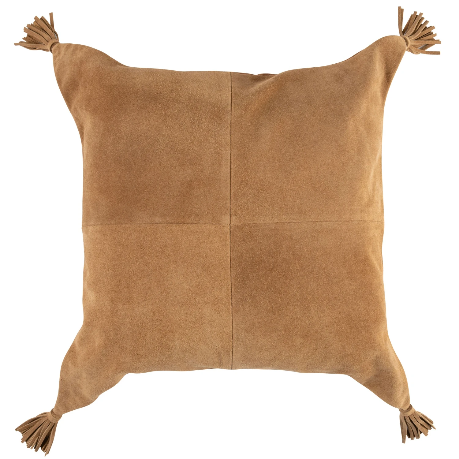 Introducing the Suede Tassel Square Pillow – a statement piece designed to add stylish sophistication to any room, available in two gorgeous brown tones. Handcrafted from ethically-sourced, upcycled suede leather, the pillow is elevated with corner tassels for a hint of western-chic vibes. Offering an exclusive aesthetic, this pillow is the perfect addition to create a sophisticated, artful ambiance.