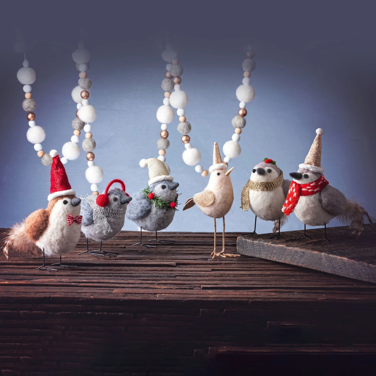 Make the holidays merry and bright with this whimsical Table Top Birds Felt Ornament Set! Each bird has a unique design to add a touch of charm to your holiday decor. Hang them anywhere for a touch of fun and festiveness!
