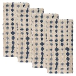 Hand-dyed and designed with a beautiful pattern, these Tie Dye Dinner Napkins accent your table in welcoming shades of blue and beige. Made of a soft cotton and linen blend, these tea towels not only provide a fun, rustic look, but are also durable and easy to clean.