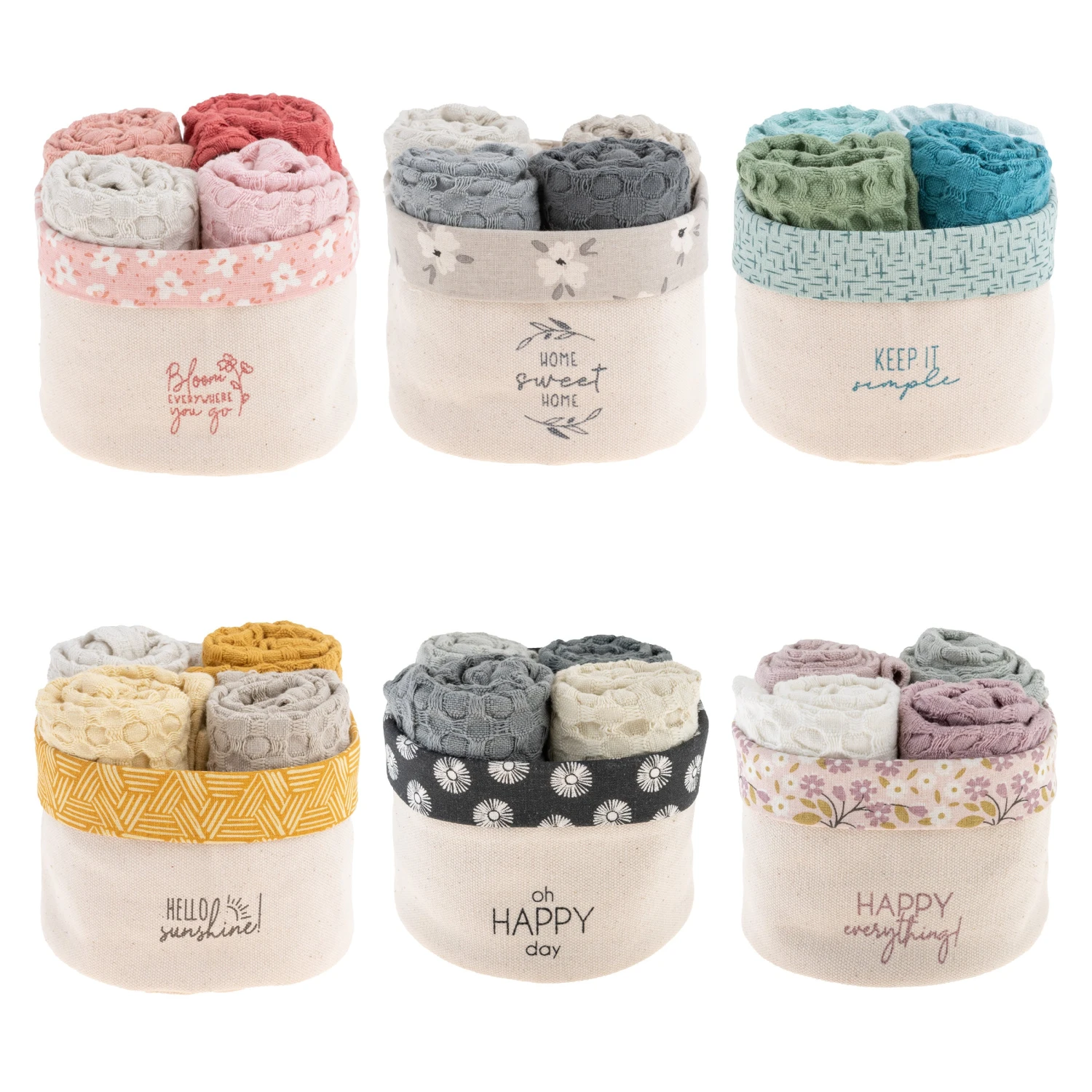 Cleaning and doing the dishes just got more fun and enjoyable with our precious waffle weave dishcloth sets. These dishcloths come in a color-coordinating set of four secured in a basket featuring a sweet saying. The dishcloths are machine washable and designed to remain durable even during tough scrubs. This set serves as the perfect organization tool for your kitchen or bathroom but can also be the perfect gift for a friend or loved one.