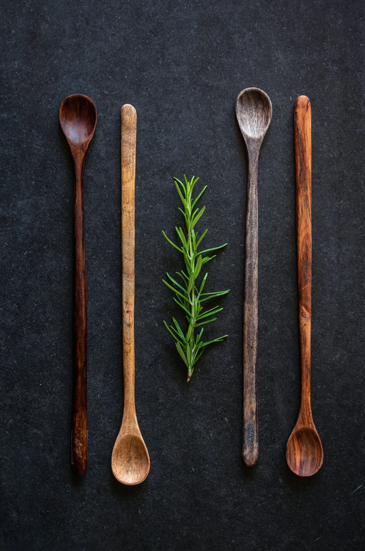 This set of four wood tasting spoons are a chic addition to the kitchen. Perfect for tasting sauces and soups while cooking, these mango wood spoons with long handles and 4 different tones of wood are a simple stove top necessity.